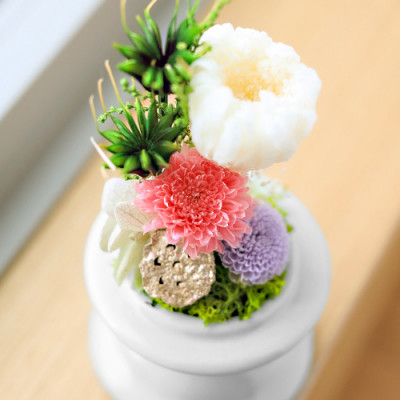 仏花(最高級プリザーブドフラワー)器付 2個セット