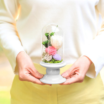 - プリザーブドフラワー 仏花 ガラスドーム「寂静ピンク」【1271170】