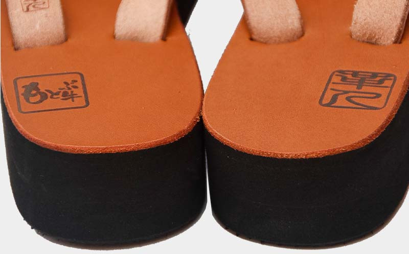 【革人】もとぶ牛 革ぞうりブラウン(ミドルヒール・女性専用)