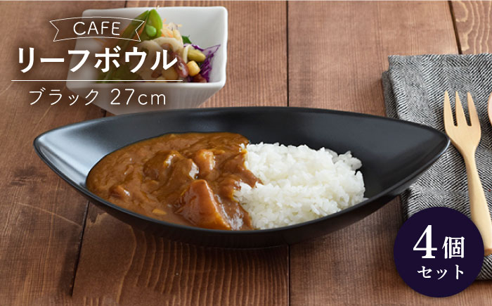 - 【美濃焼】 CAFE リーフボウル 27cm 黒マット 4個セット 【EAST table】 [MBS042]