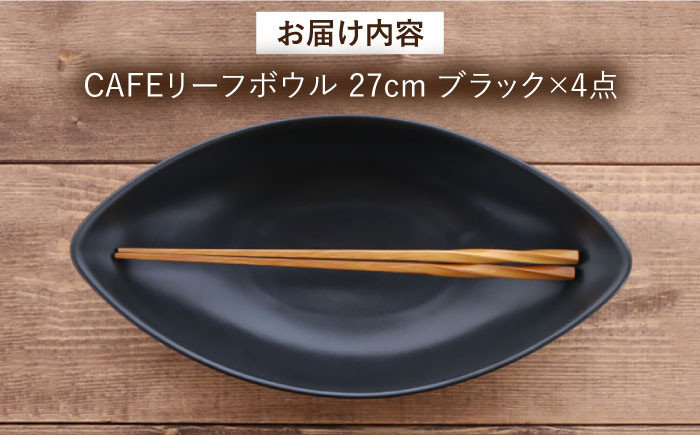 【美濃焼】 CAFE リーフボウル 27cm 黒マット 4個セット 【EAST table】 [MBS042]
