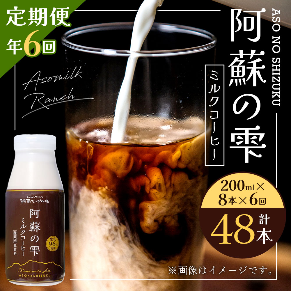 【ふるさと納税】【6回定期便】阿蘇の雫 ミルクコーヒー 200ml×8本セット 合計48本 合計1.6L×6回 ミルク コーヒー 生乳96%使用 乳飲料 ドリンク 飲み物 ボトル 定期便 熊本県産 国産 冷蔵 送料無料
