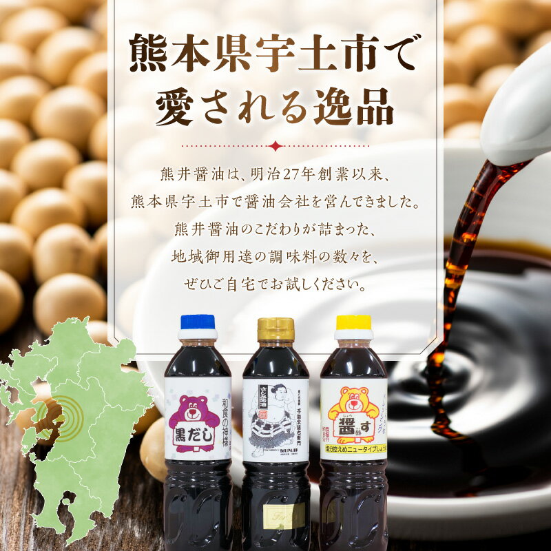 【ふるさと納税】熊井醤油 醤油(高級さしみ・黒だし・醤熊す)3本(500ml)セット【熊本県宇土市】