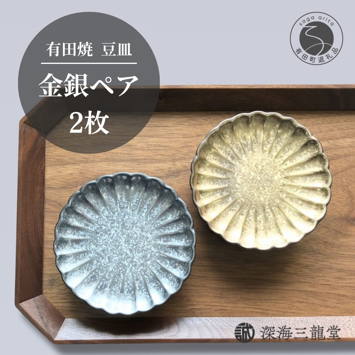 【ふるさと納税】煌めく有田焼 高級感のある豆皿/金銀ペア 深海三龍堂 食器 おしゃれ ゴールド シルバー シンプル きらきら 陶悦 A10-128