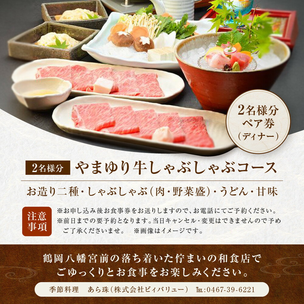 - 【ふるさと納税】季節料理 あら珠のやまゆり牛しゃぶしゃぶ会席 ペア券(ディナー)