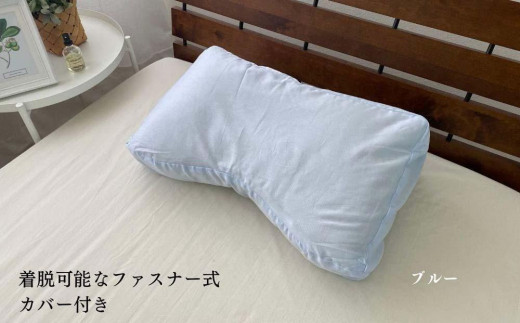 - 《横向き寝におすすめ パイプ枕 ブルー枕カバー付》横向きパイプBL