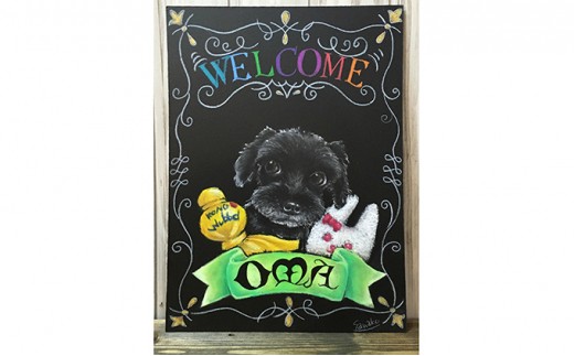 オーダーペット肖像画 A4サイズ/チョークアート手描き 犬猫うさぎ鳥など