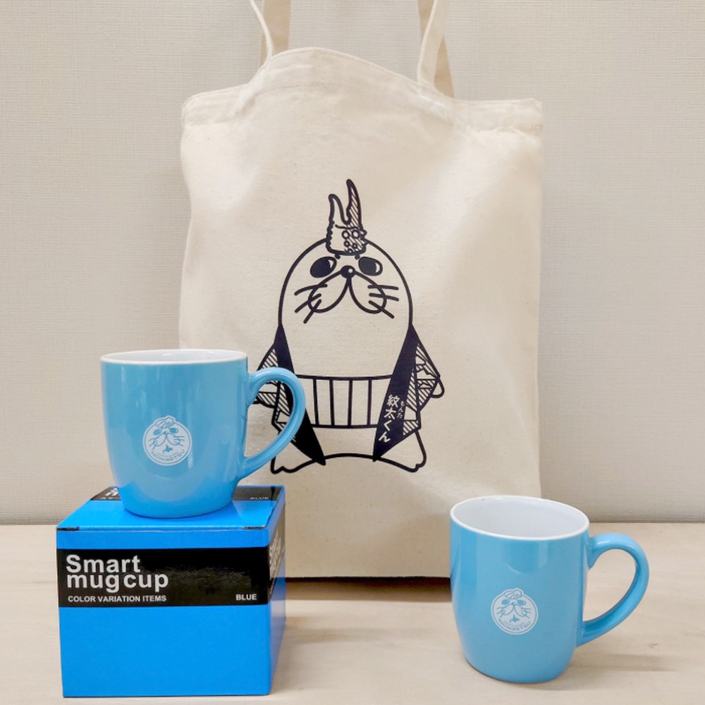 - 【ふるさと納税】15-219 ゆるキャラ紋太グッズ(マグカップ[ブルー]2個、トートバック)| トートバック 鞄 手提げバッグ マグカップ コ
