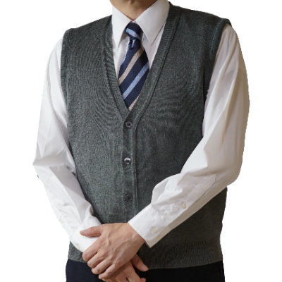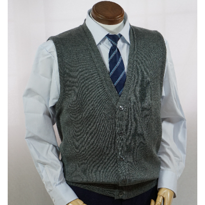 - 無地 メンズニット オープンベスト グレー M寸 15220【1219032】