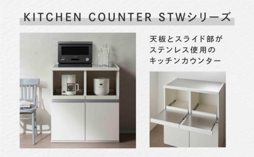 - 【スーパーホワイト】ステンレスキッチンカウンター STW-850(W848 D445 H938mm)棚 収納 完成品 木目 靴 食器 レンジ台 オーブン棚 キッチン フナモコ カウンター