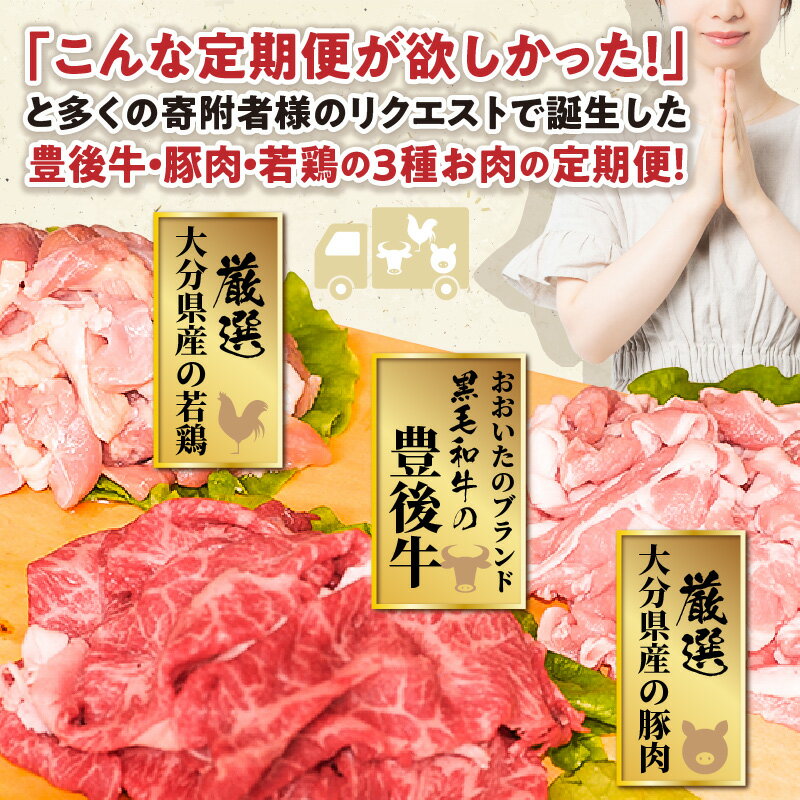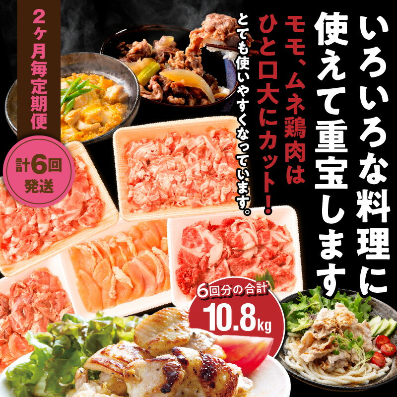 - 【ふるさと納税】2ヶ月毎お届け!美味い3種のお肉切落し1.8kg定期便/計6回発送_2165R-K