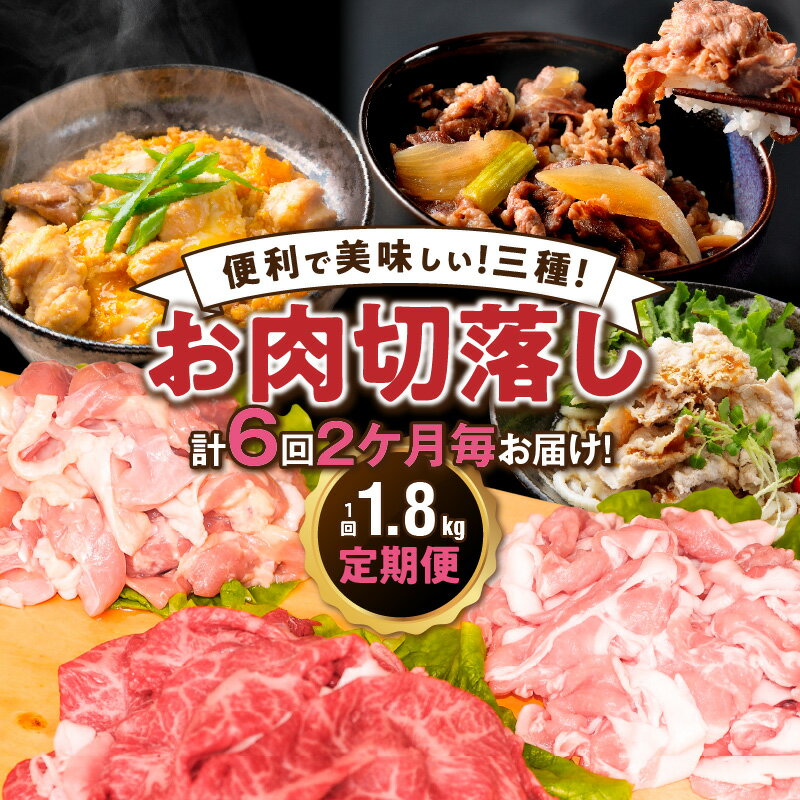【ふるさと納税】2ヶ月毎お届け!美味い3種のお肉切落し1.8kg定期便/計6回発送_2165R-K