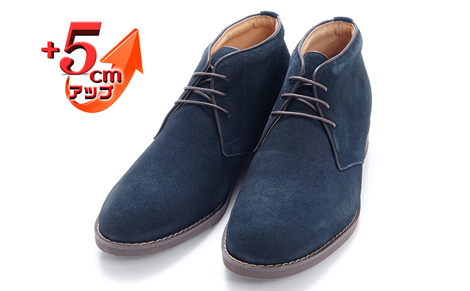 牛革 本革 日本製 ベロア チャッカーブーツ 5cmアップ カジュアルシューズ シークレットブーツ 撥水 No.850 ネイビー [№5990-0320]