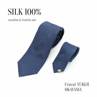 【ふるさと納税】クラバットユキジ製 シルクネクタイ&ビームスジャパン監修ヘアタイセット 無地ネイビー【1402542】