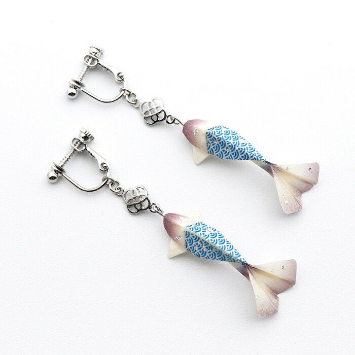 - 【ふるさと納税】(E)Ko02-004 鯉 鱗青 イヤリング 美濃和紙 アクセサリー 真鍮 レジン