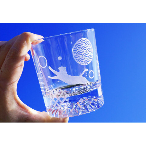 - 和柄 猫 ロックグラス【和柄 ウサギ ロックグラス グラス コップ ガラス 彫刻 プレゼント ギフト 就職祝い 誕生日 父の日 母の日 結婚祝い 新築祝い和風 耐熱】(HW-5)
