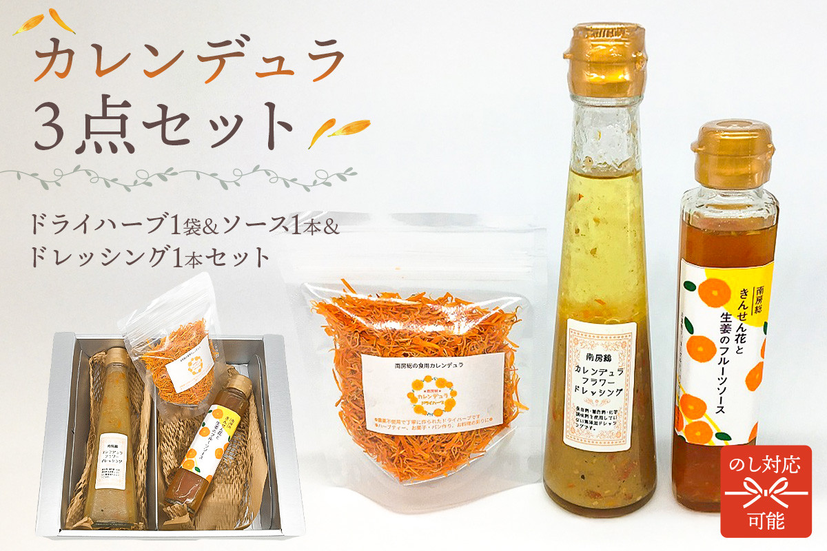 - のし対応可能 カレンデュラドライハーブ&ソース&ドレッシングセット mi0030-0004