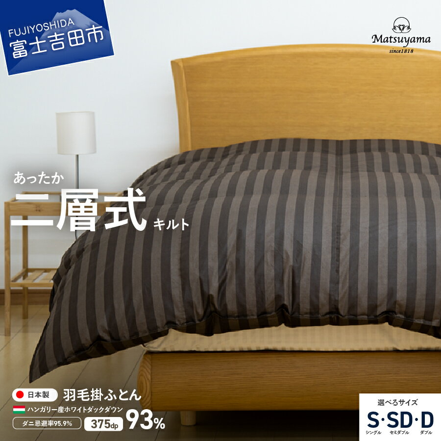 【ふるさと納税】 羽毛布団 本掛け布団 選べる サイズ シングル セミダブル ダブル 日本製 ディープブラウン サテン ストライプ ホワイトダックダウン 二層式キルト ホテル仕様 抗菌 防臭 防ダニ 寝具 ふとん 国産 ダニ忌避率 95.9%