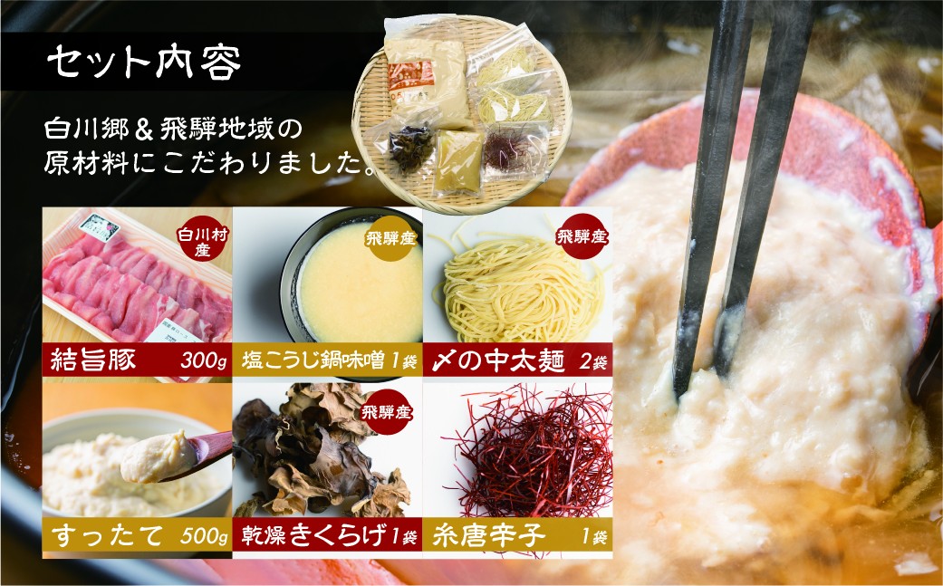 - 【年内配送受付延長!12/27ご決済完了まで】白川郷 ご当地鍋 結旨豚入り すったて鍋 2-3人前 鍋セット 結旨豚 すったて 鍋つゆ きくらげ 麺 鍋キット 深山豆富店 国産大豆 大豆ペースト クリーミー 鍋 具材付 飛騨 白川郷 ご当地 伝統食材 ヘルシー 10000円 年内発送 年内お届け