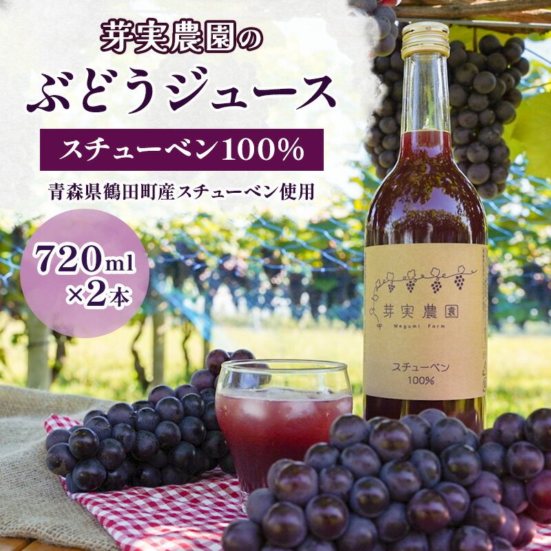 【ふるさと納税】芽実農園のぶどうジュース(スチューベン100%)720ml×2本 青森県鶴田町産スチューベン使用 果汁飲料 無添加 果汁100% ストレートジュース