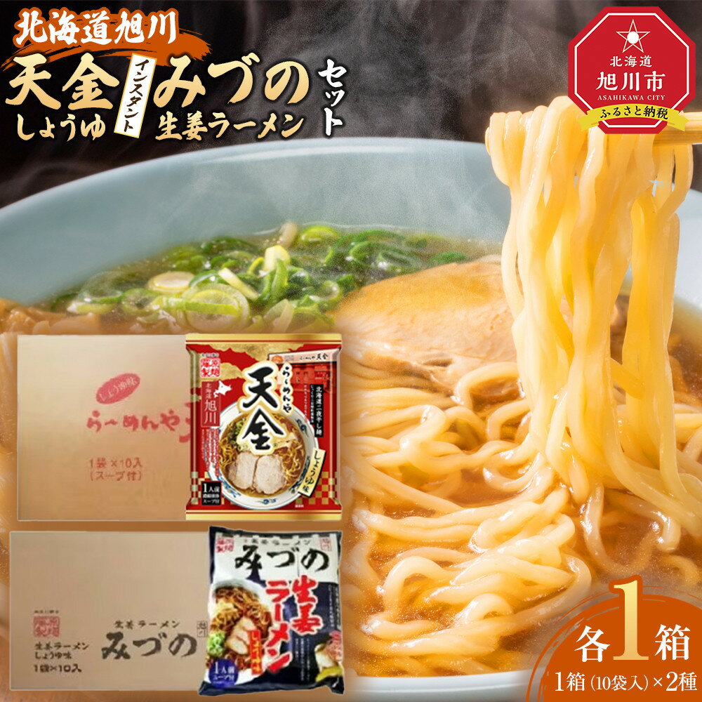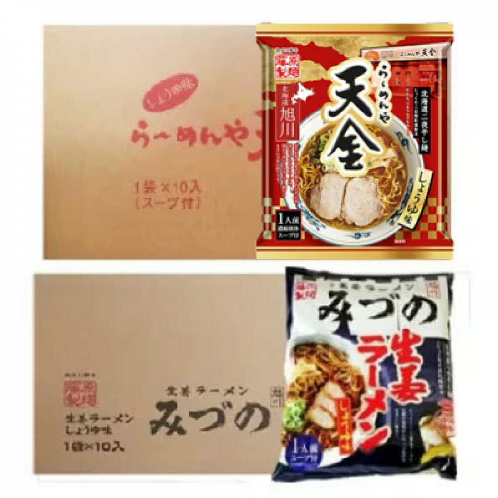 - 【ふるさと納税】藤原製麺 旭川製造 みづの生姜ラーメン 1箱(10袋入)/旭川 らーめんや 天金醤油ラーメン 1箱(10袋入)インスタント袋麺_03487 | 麺 食品 加工食品 人気 おすすめ 送料無料