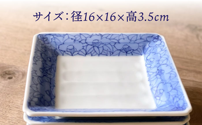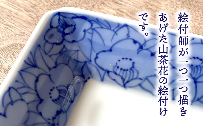 - 【美濃焼】染付 さざんか 四角皿 5枚 【豊泉窯】 プレート [TBT009]