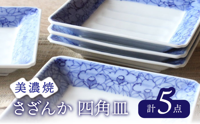 【美濃焼】染付 さざんか 四角皿 5枚 【豊泉窯】 プレート [TBT009]