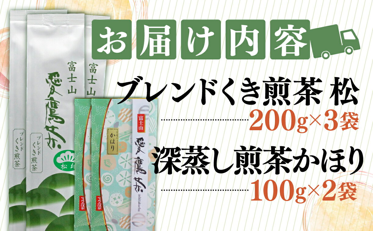 - 【ふるさと納税】 お茶 茶葉 緑茶 深蒸し 煎茶 かほり 200g ブレンド くき煎茶 松 600g セット 静岡