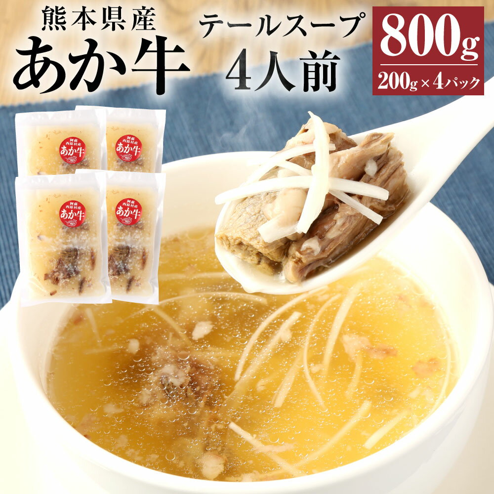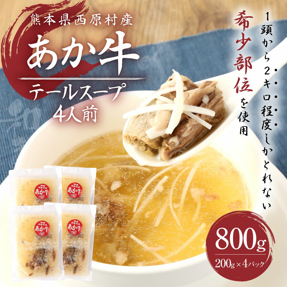 【ふるさと納税】あか牛 テールスープ 合計4人前 1人前×4パック 合計800g 200g×4パック 肉 お肉 牛肉 和牛 テール スープ 希少部位 くまもとあか牛 冷凍 国産 九州 熊本県 西原村産 送料無料