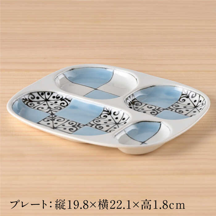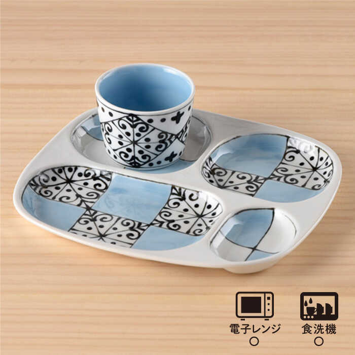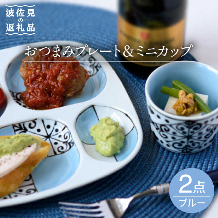 - 【ふるさと納税】【波佐見焼】おつまみ プレート・ミニカップ ペアセット 「市松」ブルー 食器 皿 【大新窯】 [DC53]