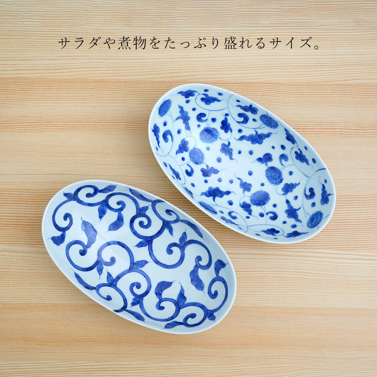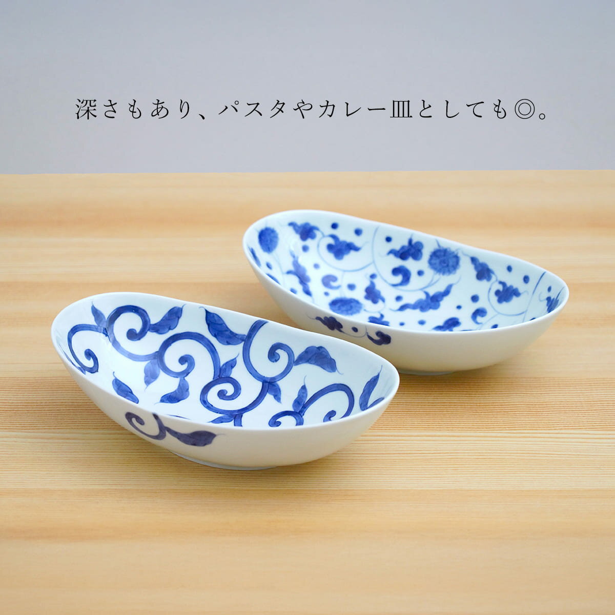 - 【ふるさと納税】有田焼 染付唐草楕円ボール皿2枚セット そうた窯 A45-36