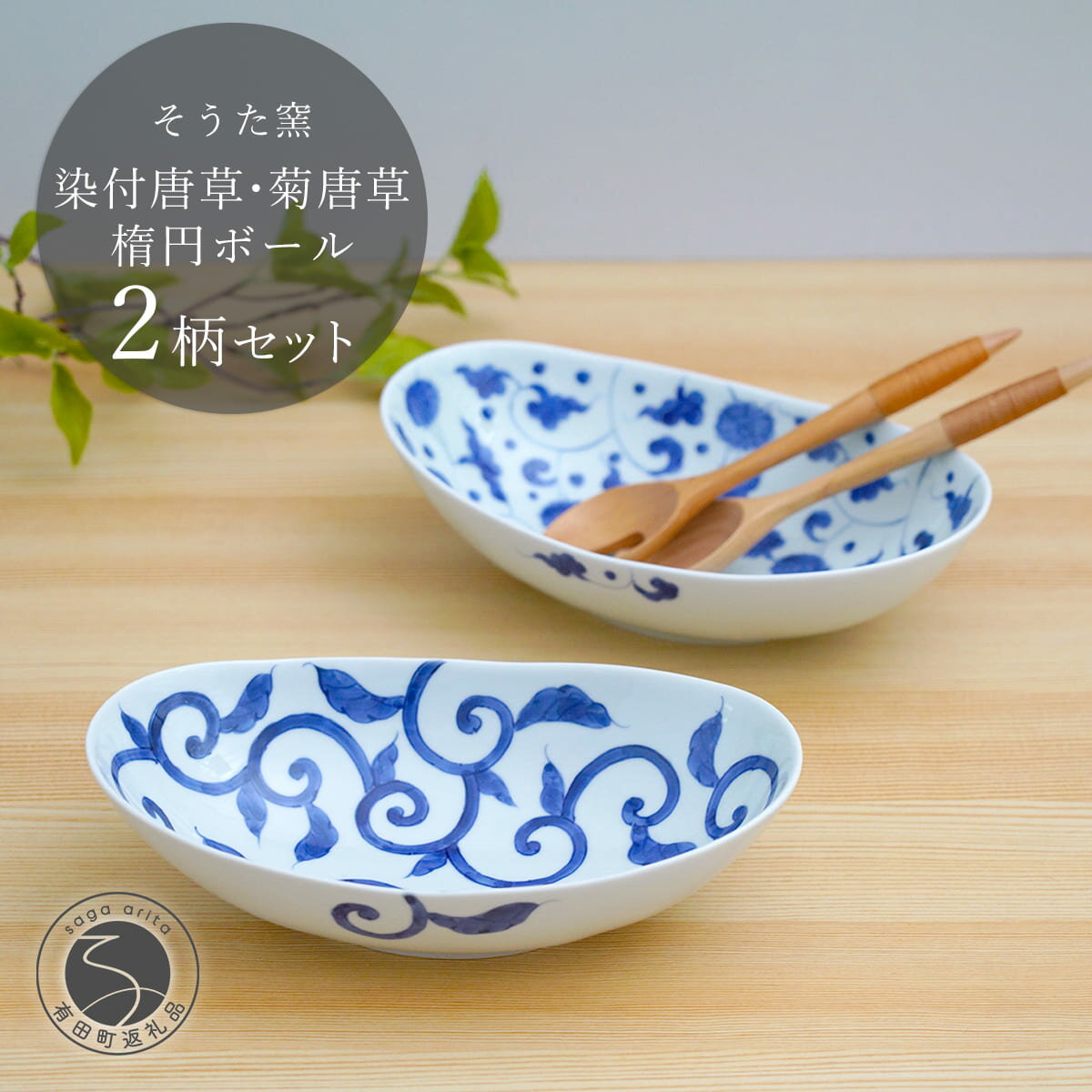 【ふるさと納税】有田焼 染付唐草楕円ボール皿2枚セット そうた窯 A45-36