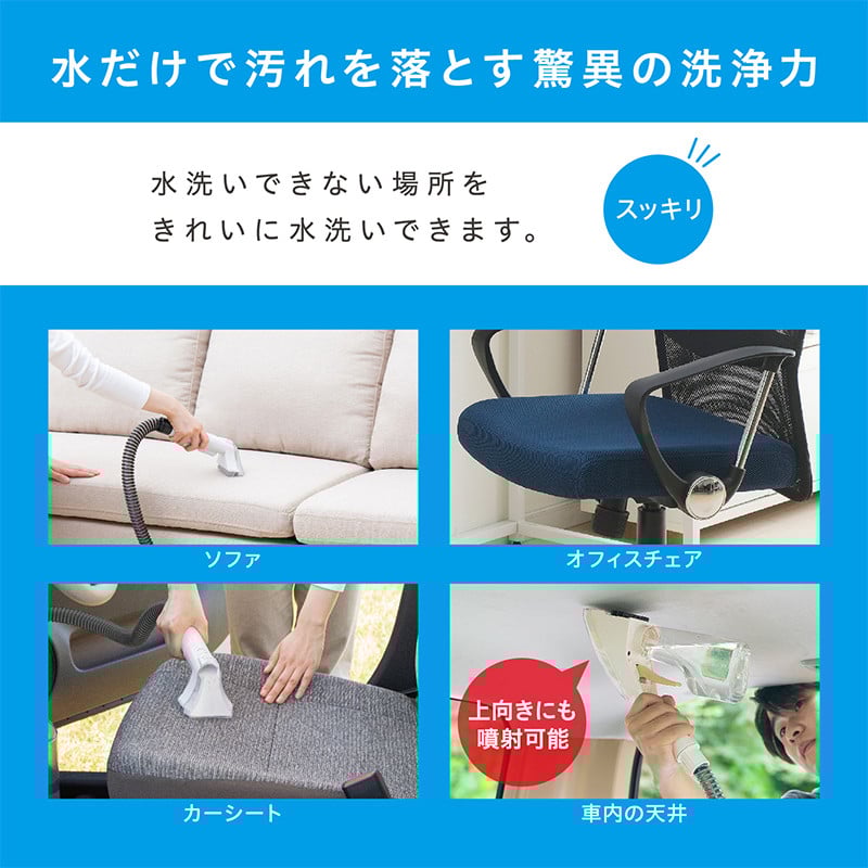 コードレスで使えるリンサークリーナーがもらえます。コンパクトなサイズで、重さは約2.4kgと軽量。充電式で、約10分間の連続使用が可能です。吸引力は約20Wで、0.4Lのタンク容量を持ち、清水タンクも同じ容量です。ホースの長さは96mmで、40℃までのお湯も使用可能。付属品にはハンドツールや清掃ブラシが含まれ、バッテリーはリチウムイオンで約1000回の充電が可能です。充電時間は約4時間で、1年間の保証付きです。