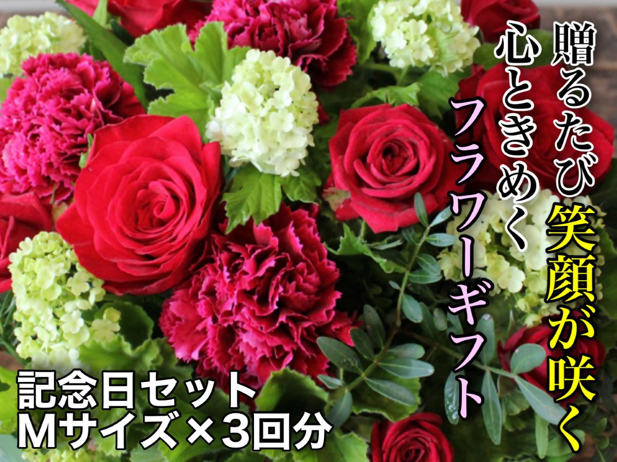 【ふるさと納税】お花ちゃん生花店 季節のフラワーアレンジメント〜記念日セット〜(全3回) Mサイズ
