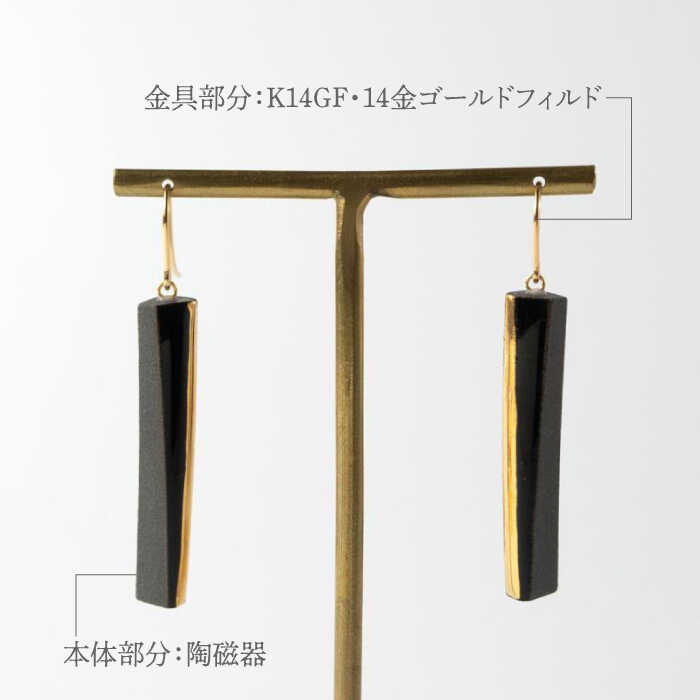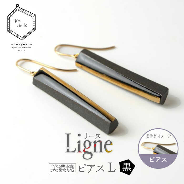- 【ふるさと納税】【美濃焼】 Ligne -リーヌ- ピアス L 〈黒〉 【七窯社】 アクセサリー おしゃれ [TAP044]