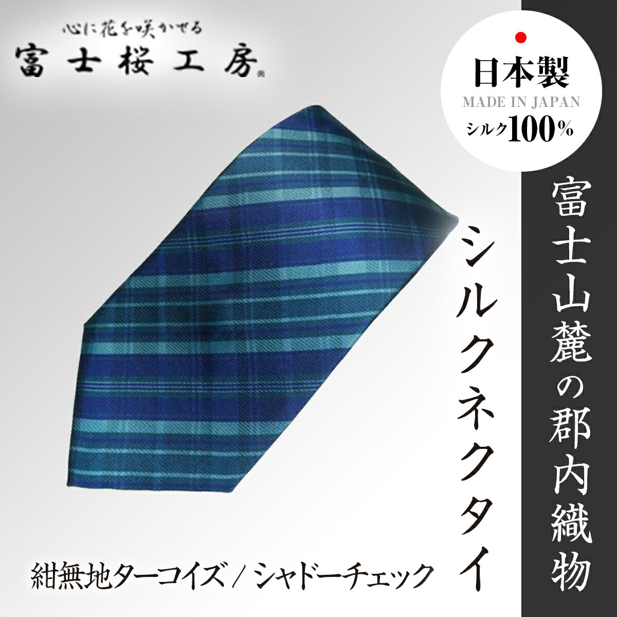 【ふるさと納税】 郡内織物「富士桜工房」シルクネクタイ紺無地ターコイズ/シャドーチェック FAA1059