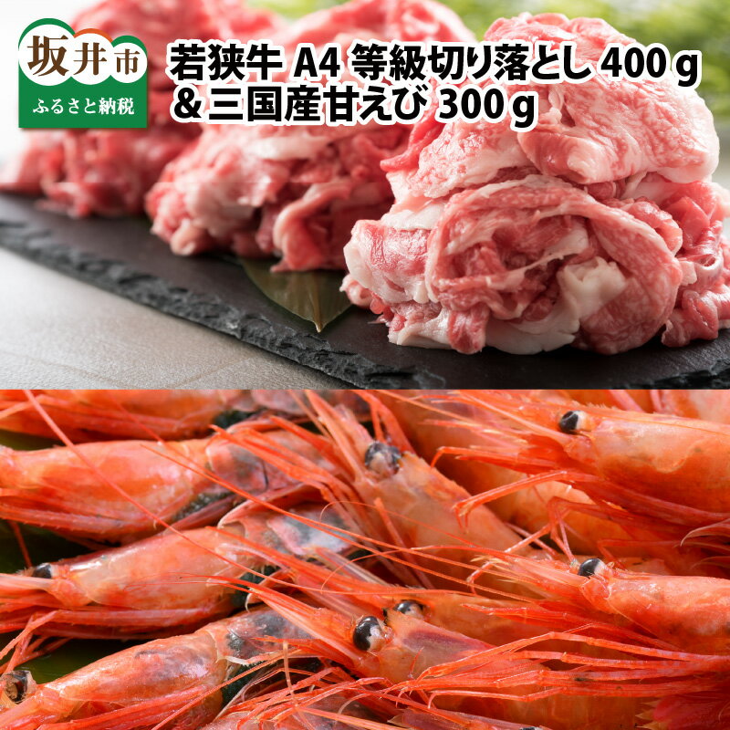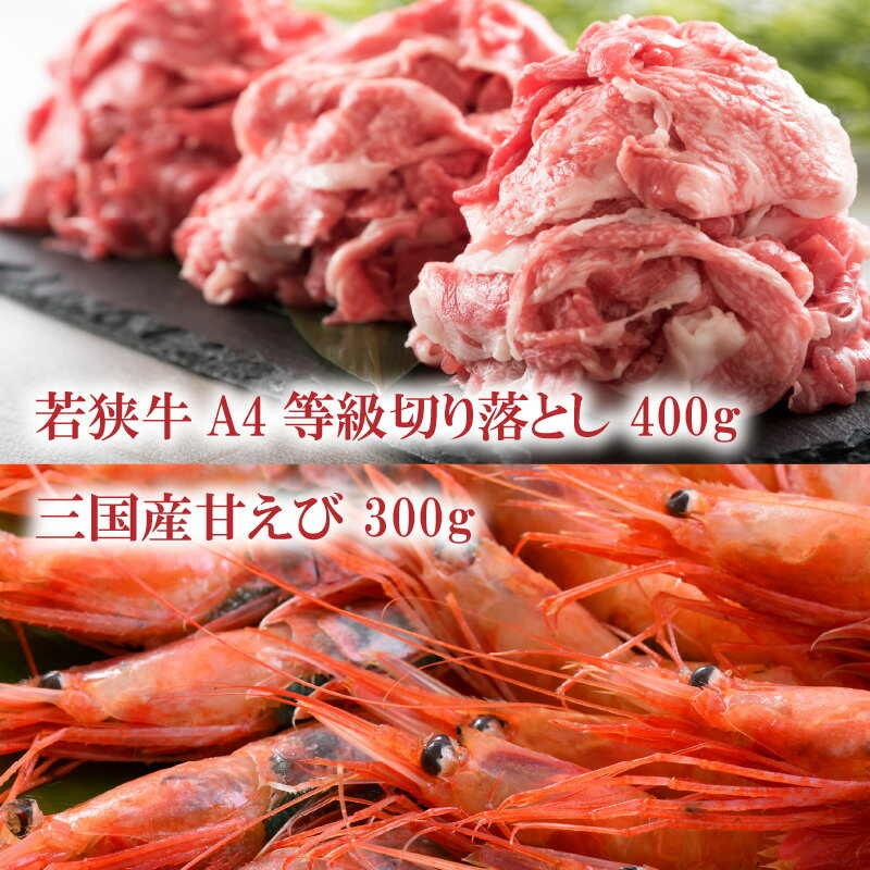 - 【ふるさと納税】若狭牛A4等級切り落とし 400g + 三国産甘えび 300g