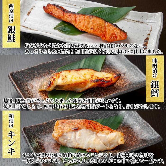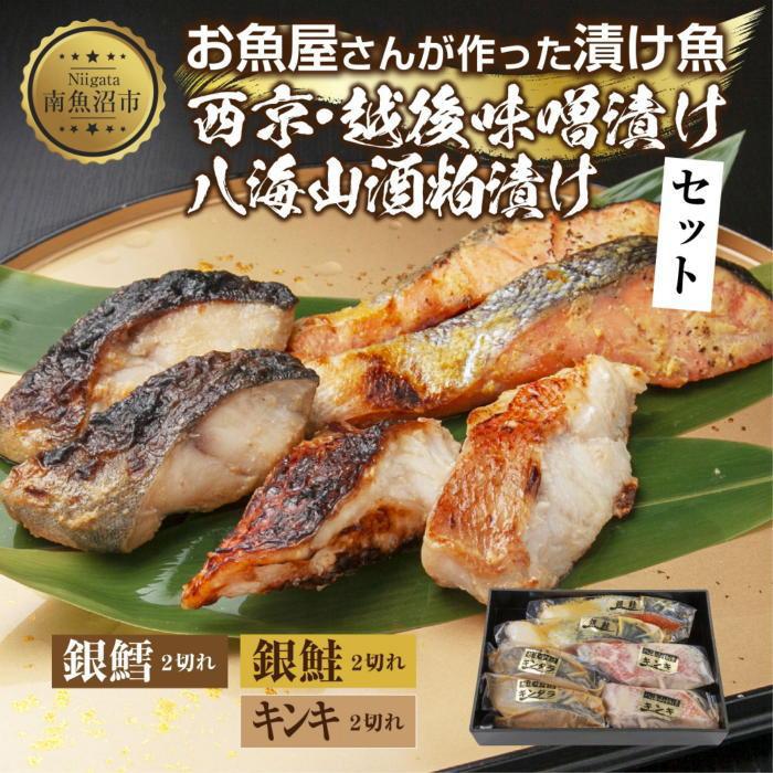 - 【ふるさと納税】12.漬け魚 銀鮭 西京漬け 銀鱈 味噌漬け キンキ 八海山 粕漬け 切り身 3種 計6切れ 漬魚 鮭 銀たら 鱈 きんき キチジ 西京焼き 西京味噌 越後味噌 酒粕漬け 酒粕 利七屋 新潟県 南魚沼市