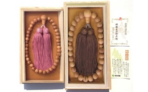 御山杉 お念珠 男女ペア 男性用:こげ茶 女性用:ピンク/世古林業 銘木 数珠 三重県 度会町 伊勢志摩