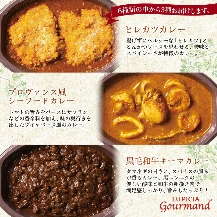 【ふるさと納税】ルピシアグルマン カレー おまかせ 3種 セット ギフトBOXなし オンライン 申請 ふるさと納税 北海道 ニセコ カレーライス ヒレカツ シーフード キーマ ビーフ バターチキン チキン 時短 レンジ 食べ比べ スパイス ニセコ町 【06128】