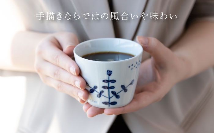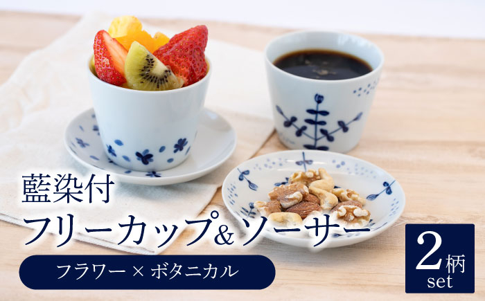 - 【美濃焼】藍染付 フリーカップ&ソーサー 2柄 ペア セット(フラワー×ボタニカル)【敏山窯】 [MEU008]