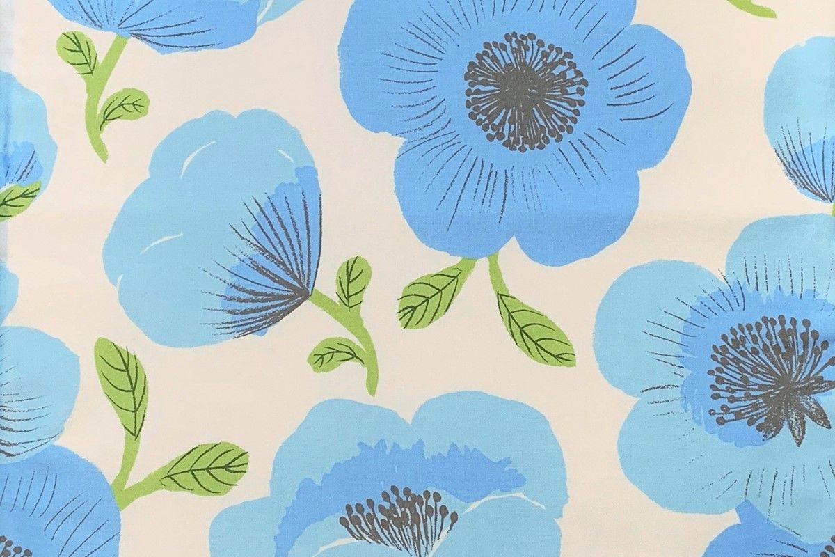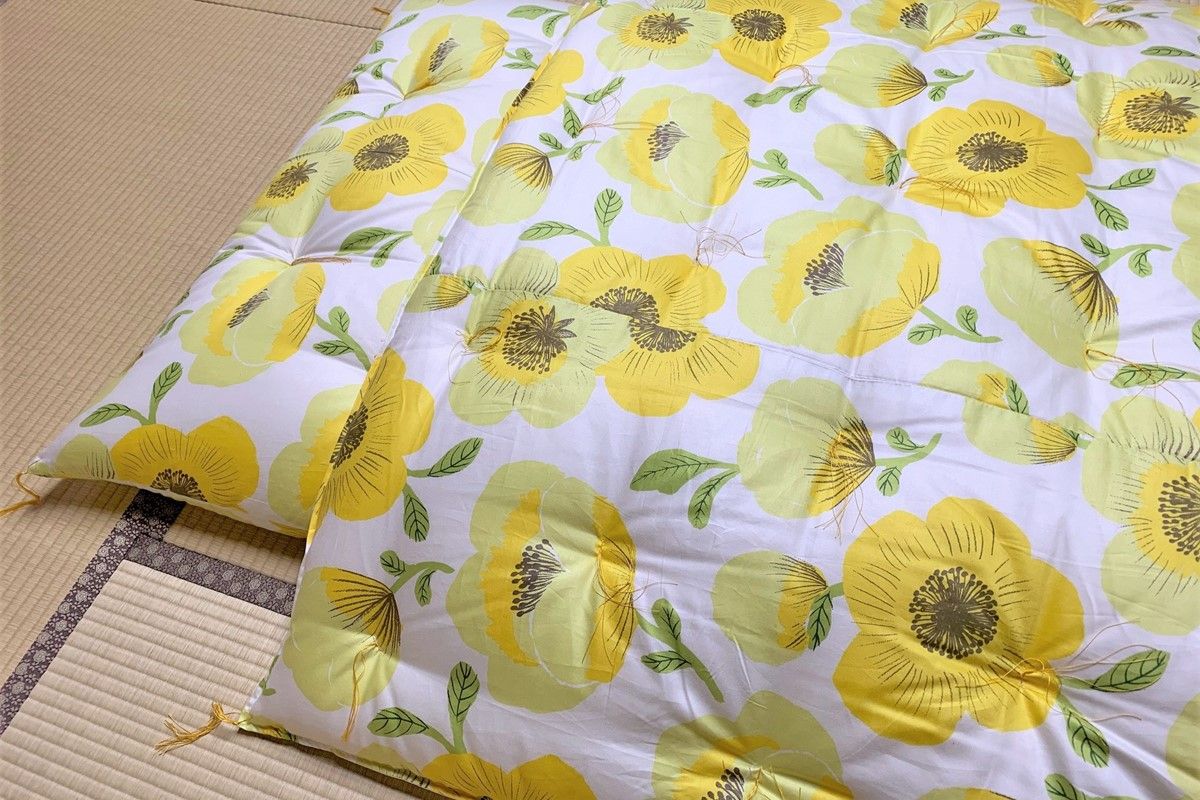 - 天然繊維手作り 木綿わた入り掛ふとん(ポピー柄「ブルー」)HT00095