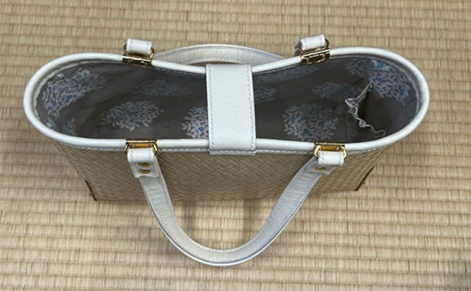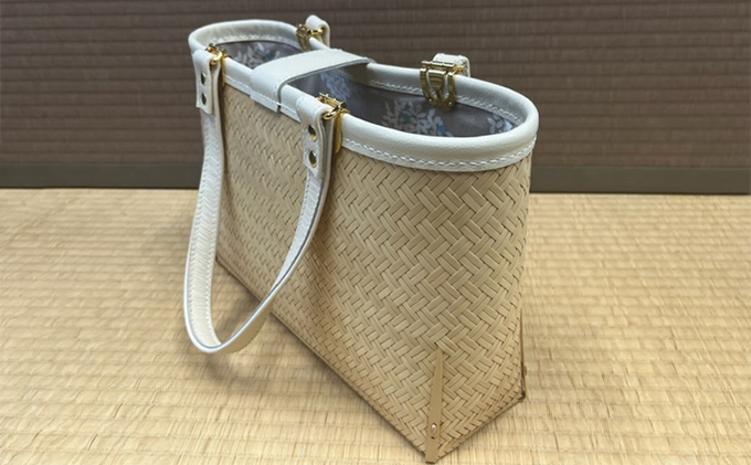- [№5305-0137]竹工芸品手提げバッグ(網代編・竹色・小)