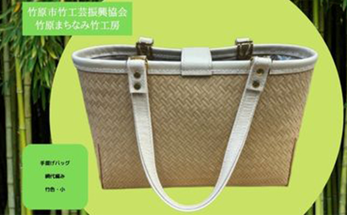 [№5305-0137]竹工芸品手提げバッグ(網代編・竹色・小)
