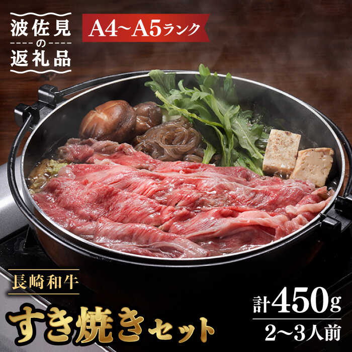 - 【ふるさと納税】【割烹の味をご自宅で】【A4~A5ランク】長崎和牛 すき焼き セット 合計450g 2~3人前【割烹堀江】 [WE03]