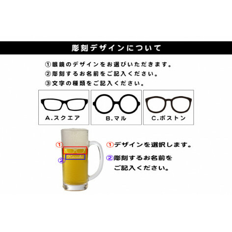 - 名入れ無料 選べるデザイン 眼鏡のビールジョッキ【ジョッキ ビール ガラス 彫刻 プレゼント ギフト 就職祝い 誕生日 父の日 母の日 結婚祝い 新築祝い和風 耐熱】(HW-8)