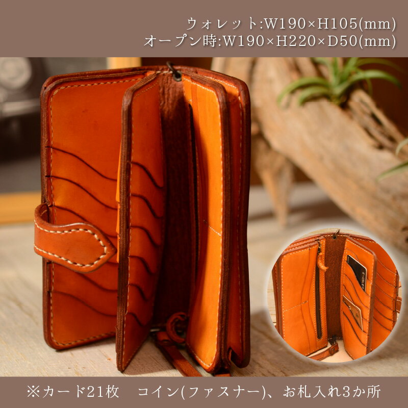 【ふるさと納税】ウォレット・ビッグママ (カービング) / 本革 牛革 財布 サイフ 手縫い 雑貨 高級 オリジナル レザー職人 フウネレザーファクトリー 送料無料 [O-027001]