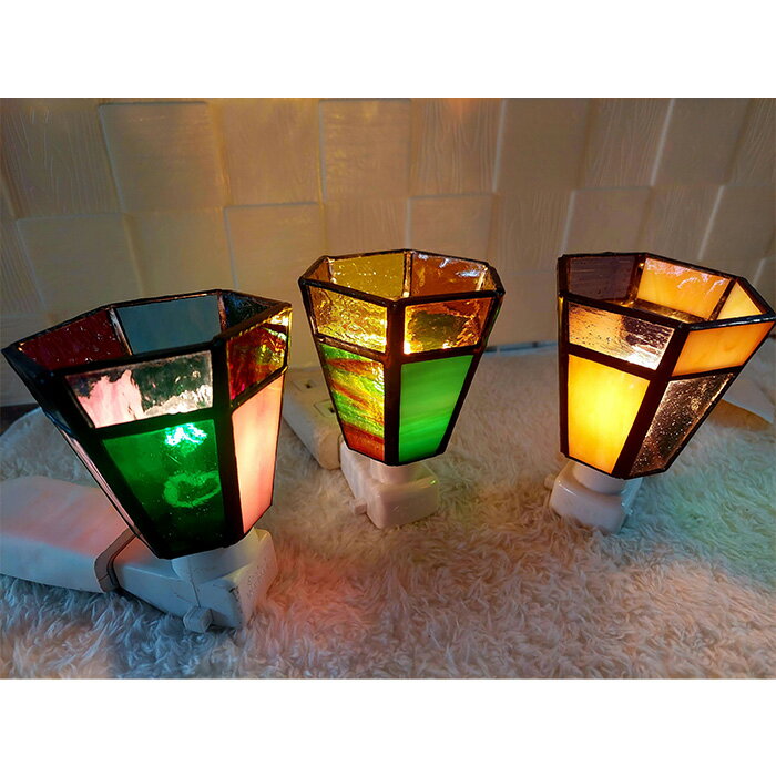 【ふるさと納税】ステンドグラス6角おやすみライト・マルチカラー / インテリア 点灯 消灯 ガラス 寝室 照明 送料無料 愛知県 特産品