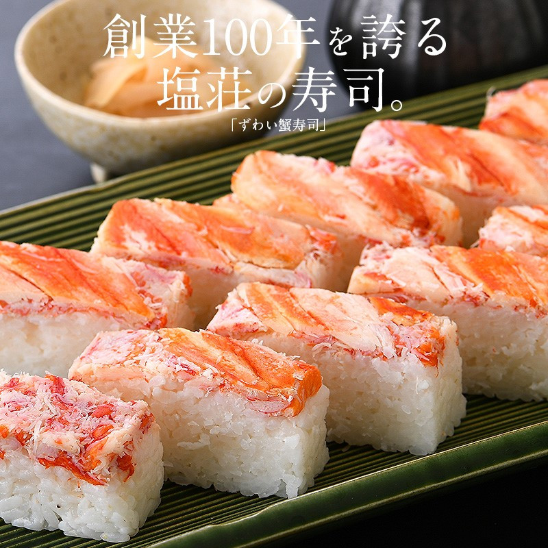 - [053-a016] 極上ズワイ蟹寿司2本セット 【敦賀 塩荘 しおそう 贈り物 贈答 ギフト 寿司 かに カニ ズワイ 家族 セット 化粧箱 のし対応 】