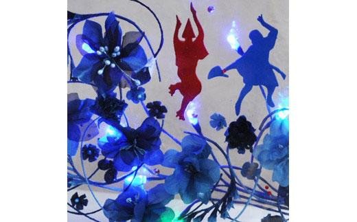 - 藍染花 花と踊り子のLED入り長方形フレーム額